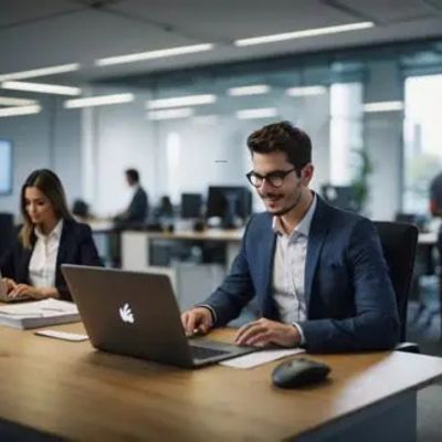 O jovem participa de tarefas administrativas simples, adquirindo experiência prática no dia a dia.